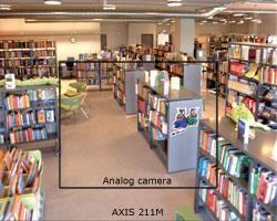 The increased resolution can also be used to provide a significantly larger overview. In the example, the inner rectangle shows the area covered by an analog CCTV camera. With the same number of pixels per area, the full 1280x1024 resolution provided by AXIS 211M - the outer rectangle - covers a three times larger scene.